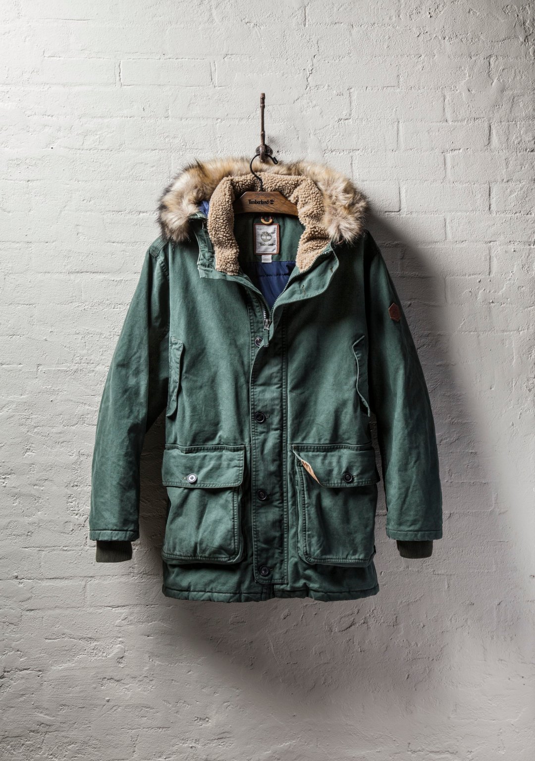 Based off of a vintage military parka this sherpa lined jacket comes in a deep fatigue color.